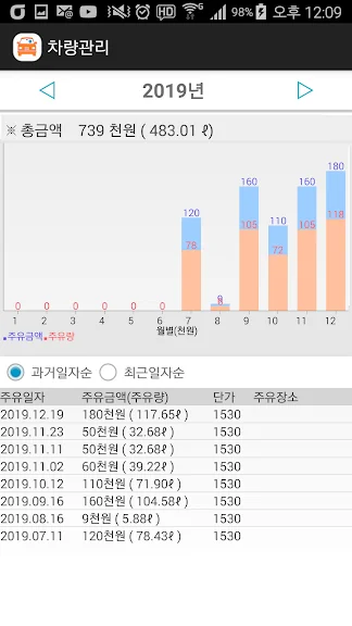 ㅇ 연간 주유내역을 월별 그래프 및 상세 내역 보기