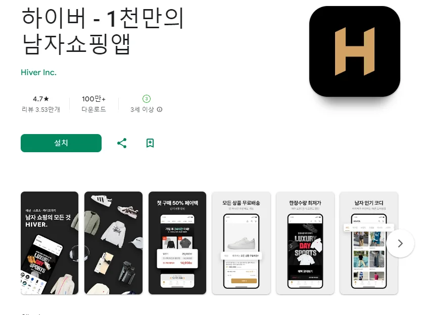 4. 하이버 - 1천만의 남자쇼핑앱 어플 소개