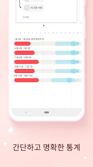 - 심플한 생리 정보 화면으로 간단한 통계를 확인할 수 있어요.