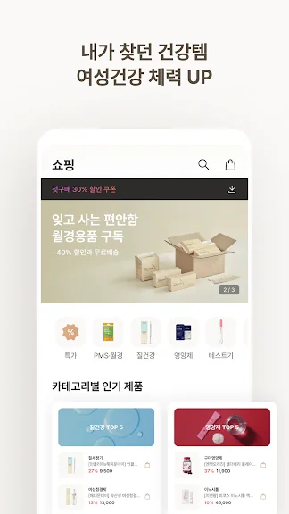 * 고민 검색: 질염, 월경통, 다낭성난소증후군, 피임약, 성병 검사 등 고민되는 주제의 키워드를 검색하면 읽기 쉬운 콘텐츠와 유용한 제품을 확인할 수 있어요.