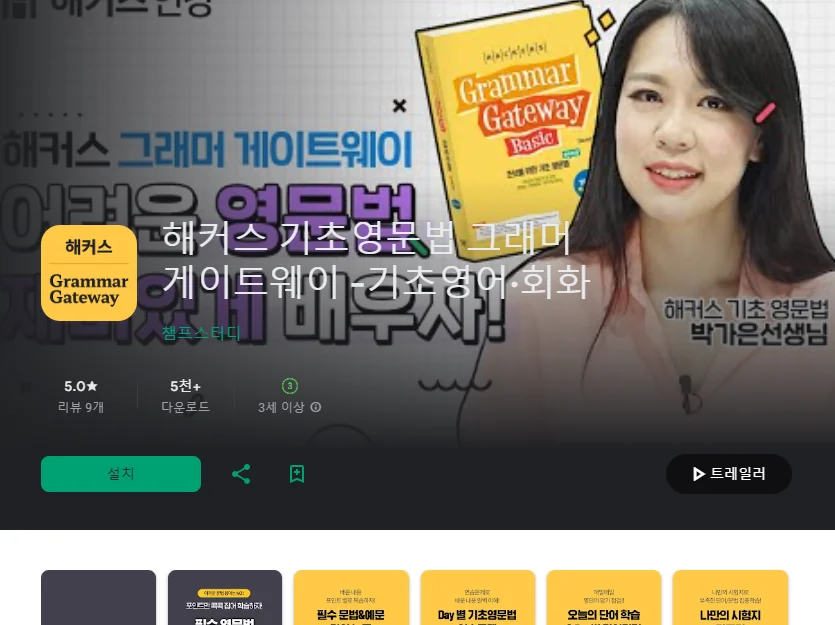 이 어플은 구글플레이스토어에서 "영어 문법 공부 방법"로 검색했을때 3번째로 나오는 어플입니다. 아래는 해커스 기초영문법 그래머 게이트웨이 -기초영어·회화 어플에 대한 자세한 설명이니 참고하세요.