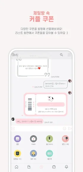 일상 속 대화들을 나누어보세요. 사소한 이야기부터 진지한 이야기까지 오직 둘만이 사용하는 비밀 채팅방입니다. 밸런스 게임과 일문일답, 그리고 칭찬 카드까지 모두 채팅방에서 즐겨볼 수 있어요. 미니 게임들로 몰랐던 연인의 취향을 알아볼 수도 칭찬 카드로 연인의 자존감을 높여줄 수도 있어요.