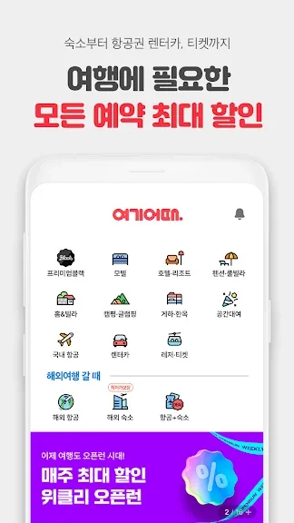 1) 여기어때 - 호텔, 모텔, 펜션, 항공권 최저가 예약 어플 소개