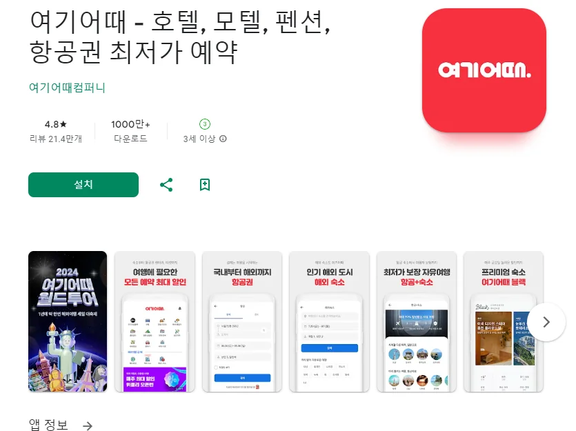 1. 여기어때 - 호텔, 모텔, 펜션, 항공권 최저가 예약 어플 소개
