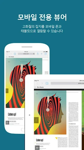 • 오프라인 열람: 자신의 장치로 잡지를 다운로드해서 인터넷 연결이 없더라도 언제 어디에서든 열람