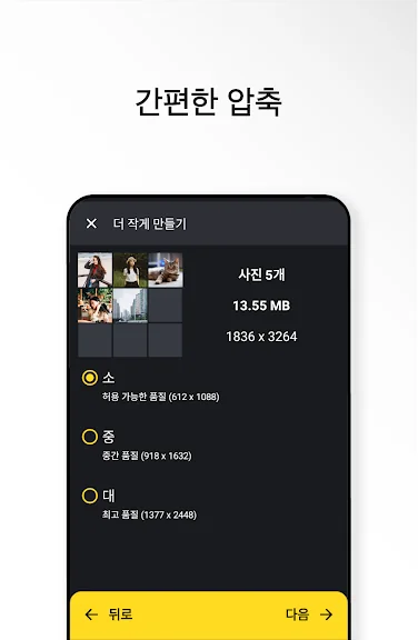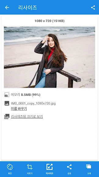 아래는 이미지 압축 및 크기 조정 어플에 대한 스크린샷 정보입니다.