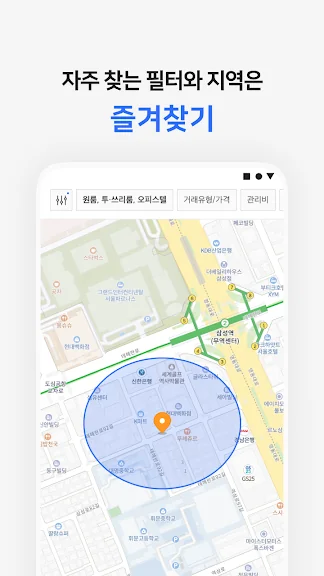 지도 화면에서 살고 싶은 위치를 그려보세요. 해당 위치와 조건에 맞는 매물들을 확인할 수 있습니다. 즐겨찾기로 저장하면 더욱 쉽고 빠르게 매물을 찾을 수 있어요!