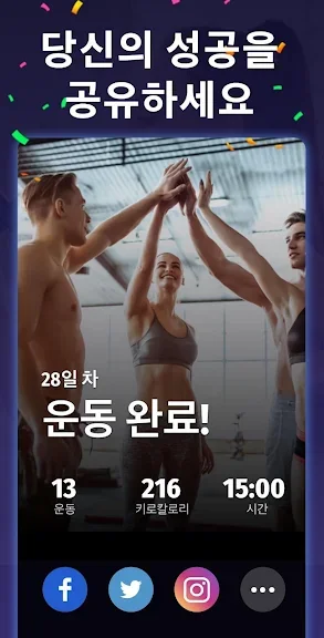 피트니스 전문 강사가 설계한 4개의 난이도로 초급자와 프로 모두 이용할 수 있습니다. 매일 다양한 유산소 운동이 진행되기 때문에 플랜을 쉽게 따라갈 수 있습니다.