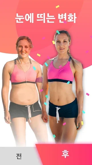 아래는 여성용 체중 감량 앱 - 홈 트레이닝 어플에 대한 스크린샷 정보입니다.