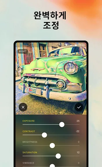 - 수채화 효과: 수채화 포토 편집 앱을 사용하여 사진에 수채화만이 제공할 수 있는 유기적인 터치를 추가하세요.