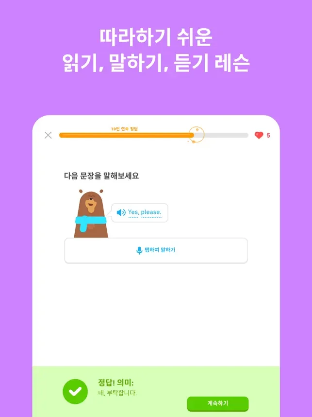 • 진도를 추적하세요. 매일 연습하는 습관을 들이면 재미난 보상과 업적을 획득하여 어학 학습 목표를 향해 나아갈 수 있답니다!