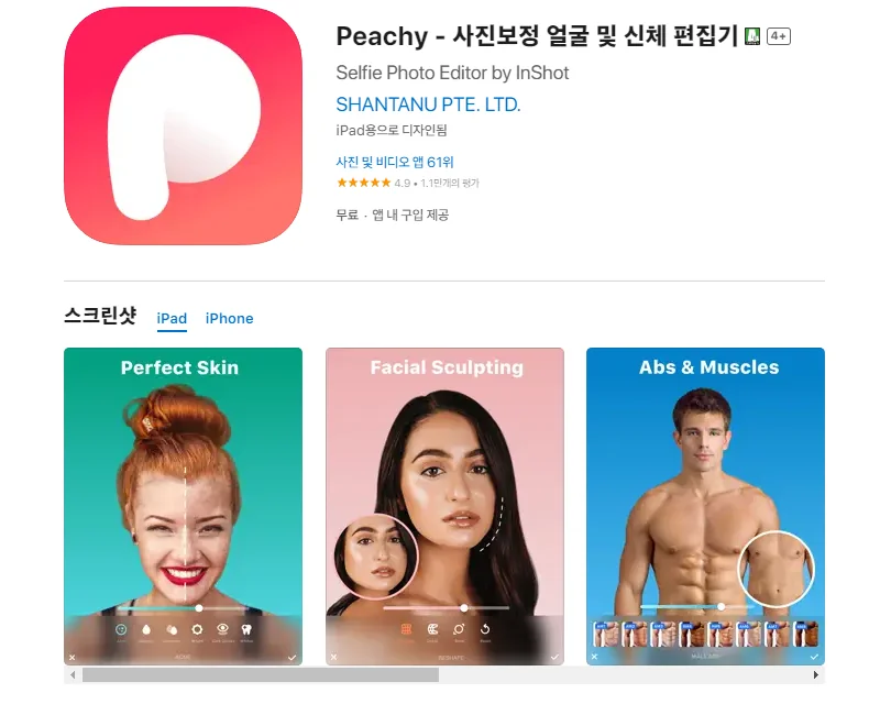 1. 아이폰 Peachy - 사진보정 얼굴 및 신체 편집기 앱