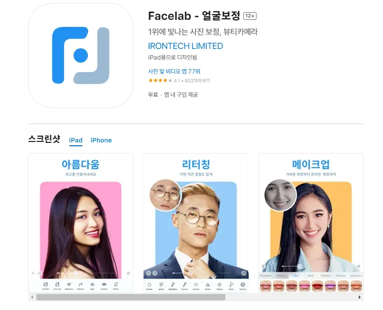 아래는 아이폰 Facelab - 얼굴보정 어플 스크린샷 정보입니다. Facelab - 얼굴보정 어플 스크린샷 정보를 확인하고 싶으신분은 아래를 참고하시기 바랍니다.