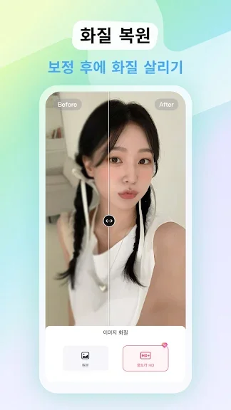 필터에서 몸매 보정까지. 동영상 편집으로 예쁘게 보정한 후에도 화질 저하는 걱정하지 마세요. 화질 복구로 예쁘고 또렷한 동영상 편집이 가능해요.