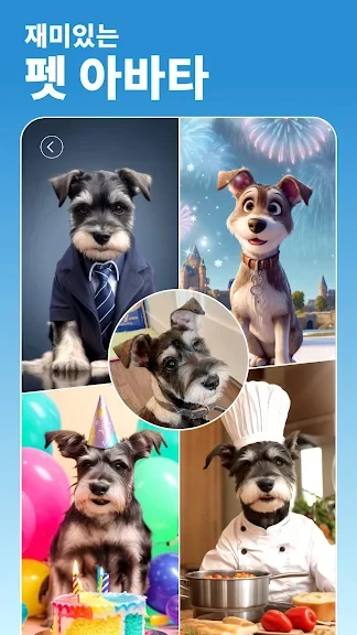 - AI 펫 인물 사진: 사진에 마법 한 스푼을 얹어 사랑스런 펫들을 매혹적인 마법사나 귀여운 요리사로 바꿀 수 있습니다.