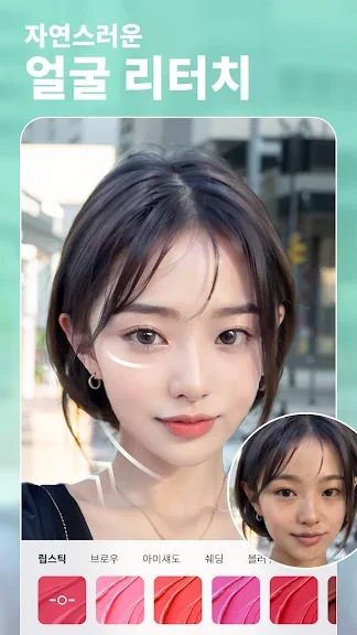- 메이크업 도구: 립스틱, 아이브로우, 아이섀도우, 블러셔, 헤어 염색 등 여러분의 룩을 향상시켜줄 자연스럽고 스타일리시한 메이크업을 적용할 수 있습니다.