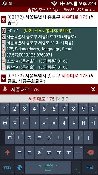 2) 참편한주소2.0 -도로명주소 자동완성 검색 어플 스크린샷