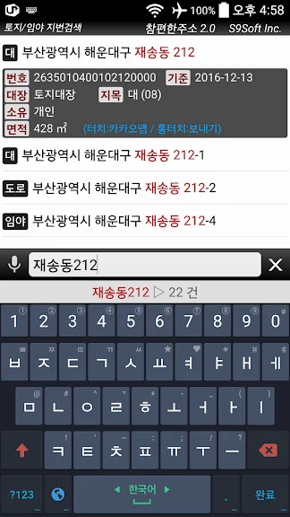 아래는 참편한주소2.0 -도로명주소 자동완성 검색 어플에 대한 스크린샷 정보입니다.