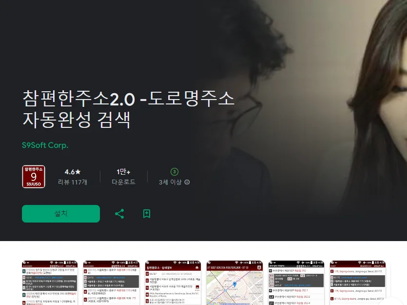 이 어플은 구글플레이스토어에서 "주소 찾기"로 검색했을때 3번째로 나오는 어플입니다. 아래는 참편한주소2.0 -도로명주소 자동완성 검색 어플에 대한 자세한 설명이니 참고하세요.