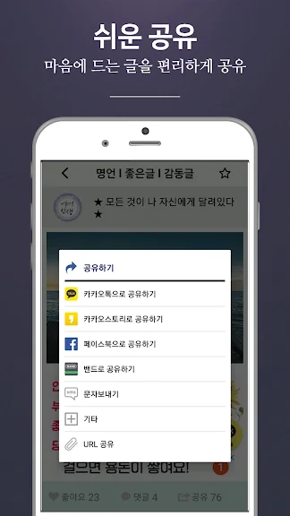 어느덧 나만의 명언집이 완성되어 언제든 다시보고 카톡이나 문자로 친구와 공유할 수 있습니다.