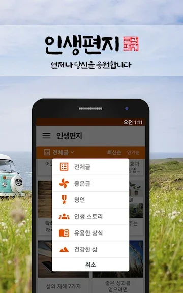 1) 인생편지 - 좋은글 건강정보 명언 감동글 힐링글귀 모음 어플 소개