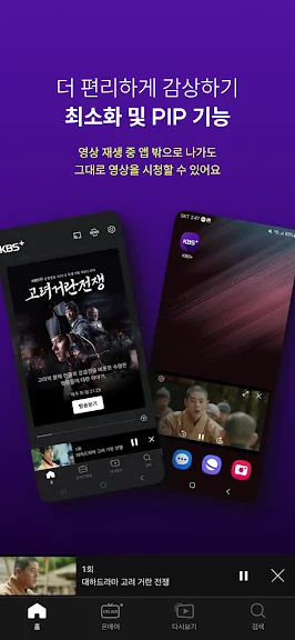 - 언제 어디서나 KBS+만 실행하면 바로 시청 가능합니다.