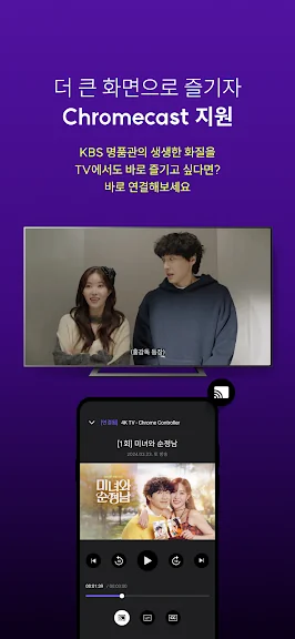 - 크롬캐스트 지원: KBS 명품관의 생생한 화질을 TV에서도 즐겨보세요.