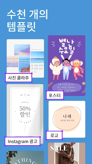 사진 편집 기능에서는 밝기, 명암, 채도 조정은 물론, 다양한 필터와 효과를 제공하여 사진을 특별하게 연출할 수 있습니다. 동영상 편집 기능도 탭 몇 번만으로 사용 가능하며, 다양한 오디오 트랙과 애니메이션 효과를 더해 완성도 높은 영상을 제작할 수 있습니다. 특히, SNS에 최적화된 디자인 기능을 통해 인스타그램, 유튜브 등 다양한 플랫폼에 맞춘 콘텐츠를 쉽게 만들 수 있습니다.