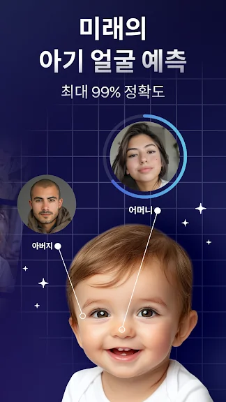 최첨단 인공 지능과 유전적 모델링을 사용하여 앱은 두 부모의 특징을 분석하여 미래 자녀에 대한 놀라울 정도로 현실적인 예측을 만듭니다.