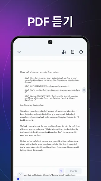 이 앱을 사용하면 책이나 인쇄물의 페이지를 사진으로 찍어 소리 내어 읽어주는 것을 들을 수 있습니다. 책장에 꽂혀 있는 좋아하는 책이 있나요? 오디오북으로 바꿔보세요.