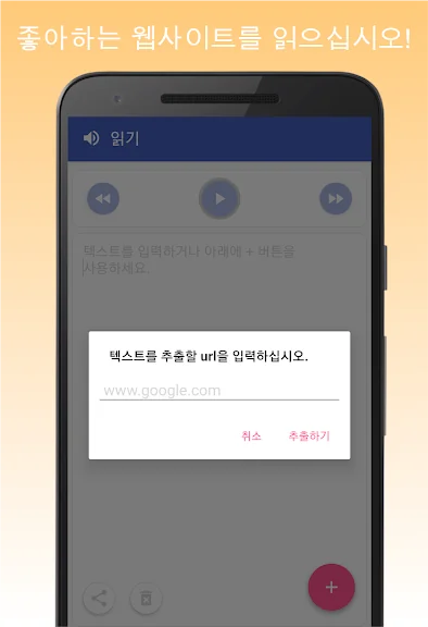 브라우저 및 뉴스 앱과 같은 다른 앱에서 URL을 공유하고 텍스트를 소리내어 읽습니다.