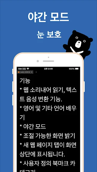 읽기 모드 어플에 대한 스크린샷 정보가 필요하시다면 아래 이미지를 참고하시기 바랍니다.